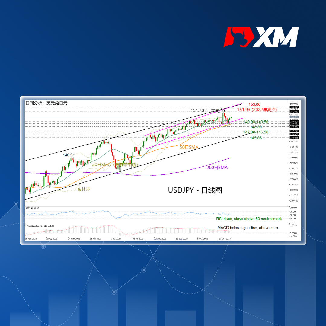 - USDJPY再次进入150区间,高于SMA