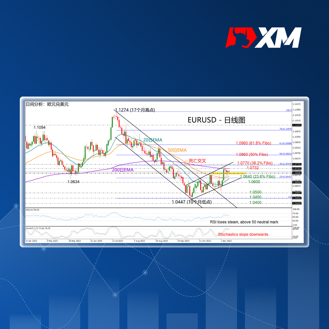 如果汇价在10月高点和前期高点1.0700上方企稳,或突破200日指数移动平均线(EMA)和位于1.0763的看涨通道,此处也是斐波那契回调线38.2%位置所在的下轨。突破此处,或会相继挑战斐波那契50%位置的价格1.0860和斐波那契61.8%位置的价格1.0960。