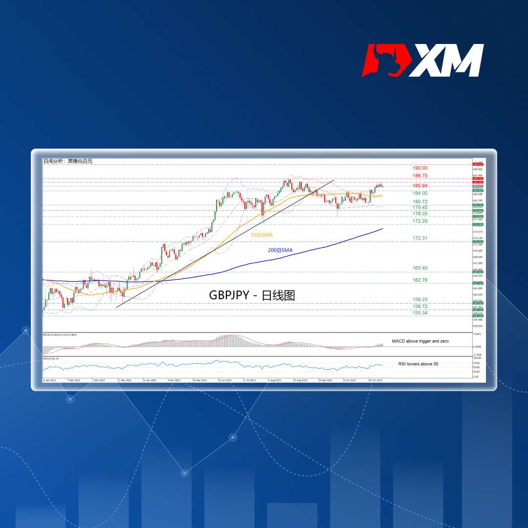 GBPJPY自1月以来一直处于长期上升趋势,8月22日触及八年高点186.75后经历回调。该货币对经历区间震荡后,反弹并突破50日移动平均线(SMA),继而触及两个月高点185.94,但反弹似乎暂时停滞。