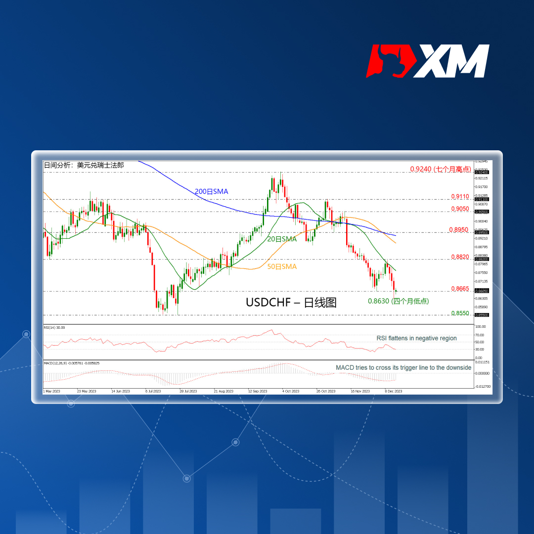 XM跟单系统技术分析 – USDCHF触及四个月低点后走高
