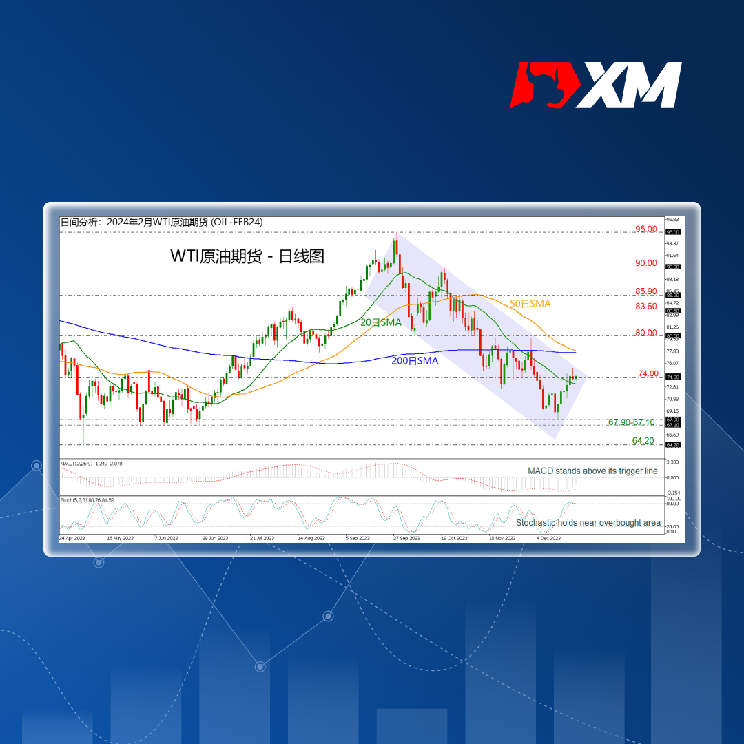 WTI原油期货正在测试74.00关口,这是自9月28日以来形成的下行通道。