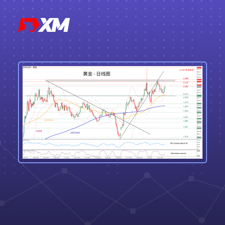XM跟单系统技术分析 – 金价触及50日SMA后走高