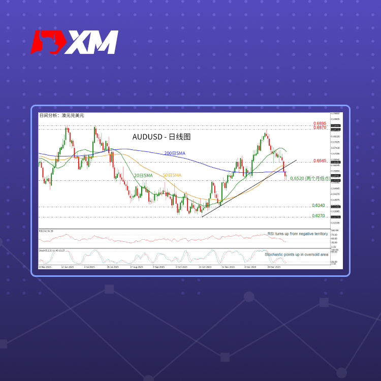 XM跟单系统技术分析 – AUDUSD在两个月低点获支撑后小幅走高