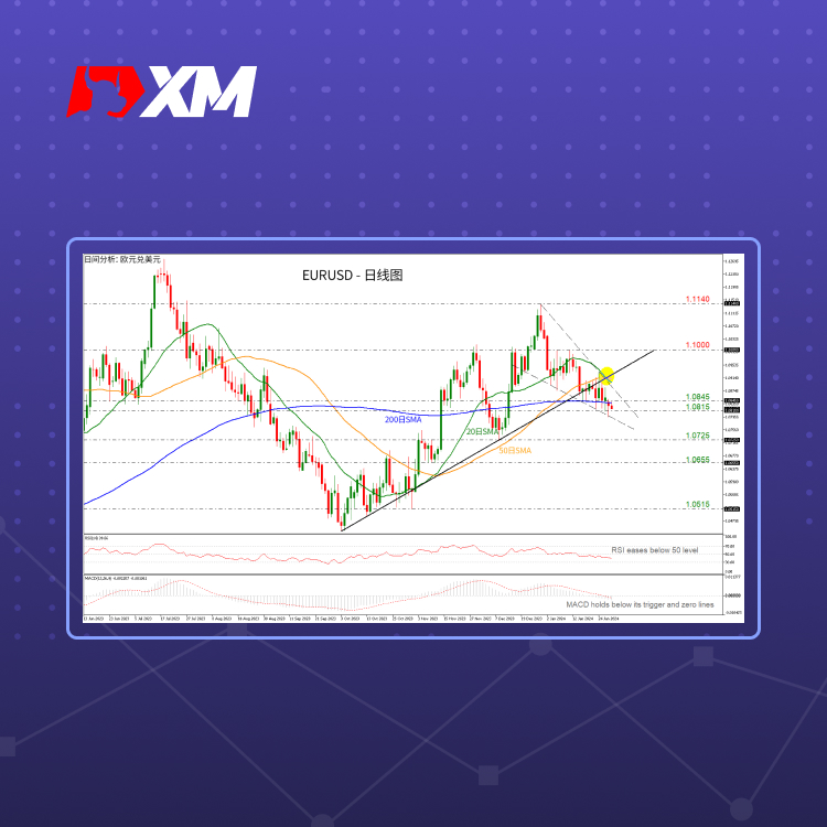 XM跟单系统技术分析 – EURUSD跌破200日SMA后继续下跌