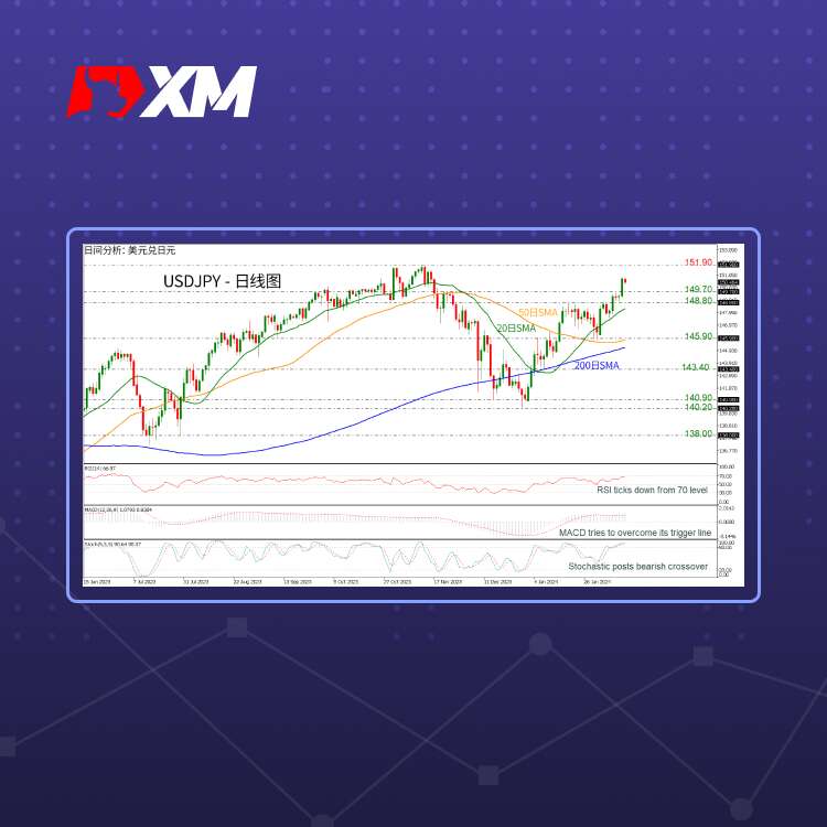 XM跟单系统技术分析 – USDJPY自三个月高点151.00附近遇阻后回落